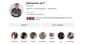 Uma campanha nas últimas semanas entre os torcedores do São Paulo nas redes sociais vem ganhando força nos últimos dias do ano. Os tricolores pedem para que todos deixem de seguir o presidente Julio Casares no Instagram. E vem dando certo.