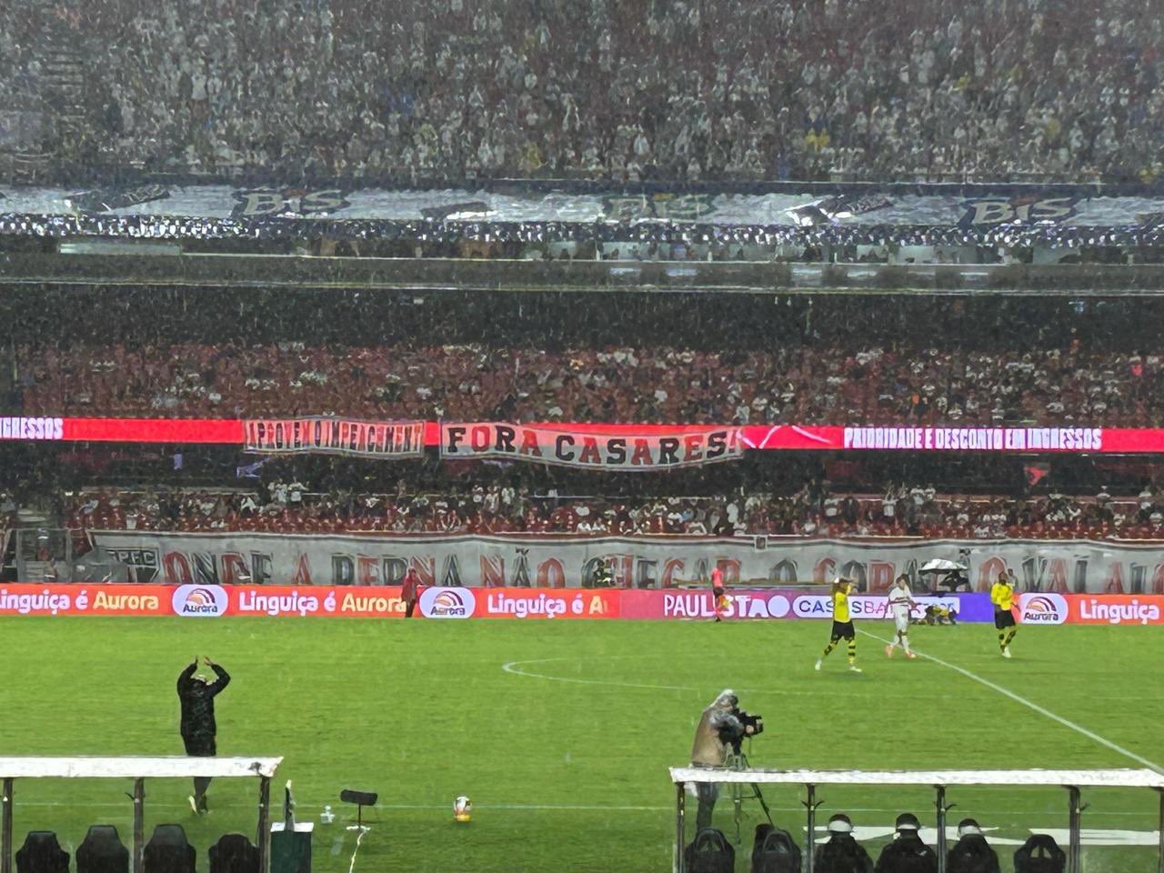 Isso não impediu que o nome do presidente do São Paulo ecoasse pelo estádio. Não de uma forma lisonjeira, claro: ele foi xingado antes, durante e depois do jogo, muitas vezes de maneira bem audível, tanto para quem estava presente como para quem apenas assistia pela televisão. Os xingamentos foram apenas uma das maneiras como os torcedores demonstraram sua desaprovação a Casares na véspera da votação que decidirá se ele será ou não afastado de seu cargo, em meio à crise institucional que tomou o clube de assalto ao longo dos últimos trinta dias.