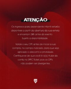 As vendas se iniciam a partir das 10h (de Brasília) deste domingo (8) aos sócios-torcedores de maior prioridade, e se estendem ao longo do dia, até atravessar a segunda-feira (9), quando a comercialização se abre ao público comum da torcida tricolor. Os preços não foram informados pelo clube.