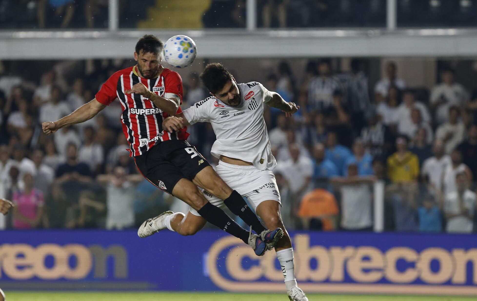 O São Paulo saiu perdendo do Santos na Vila Belmiro, mas teve força para empatar e sair com o 1 a 1 da Vila Belmiro na noite desta quarta-feira (4) em clássico pela 2ª rodada do Brasileirão. O Tricolor perdeu boas chances no 1º tempo, teve incrível erro do árbitro Anderson Daronco ao não expulsar santista que brecou Calleri, mas viu seu camisa 9 empatar na segunda etapa.