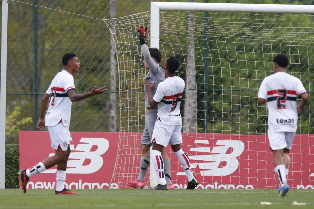 Pouco depois, o atacante Nicolas Kauan invadiu a área adversária, bateu, o goleiro espalmou e João Bispo marcou, mas o lateral são-paulino estava em posição irregular de impedimento.