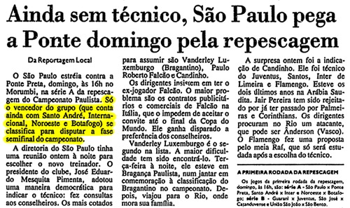 O Estado de S. Paulo‘ foi além e descreveu as qualidades vistas pela então diretoria são-paulina para confiar no nome de Luxemburgo.