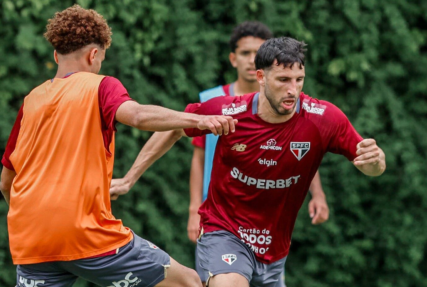 >> NÃO É POSSÍVEL: Lucas sente dores no joelho operado, desfalca treino do São Paulo e é dúvida contra o Corinthians