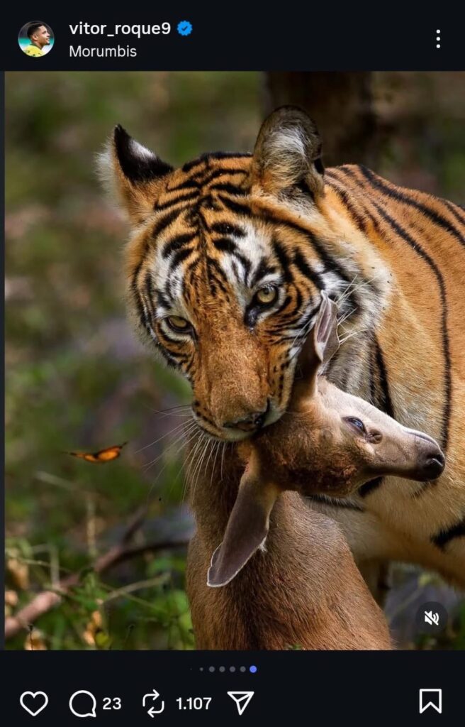 O atacante postou uma imagem sugerindo um tigre devorando um cervo (veja abaixo), uma alusão ao seu apelido, ‘Tigrinho’, e como pejorativamente homossexuais são chamados no meio do futebol.