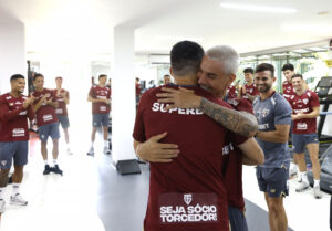 O elenco tricolor trabalhou e teve a presença de Oscar. O meia, que cumpre protocolo médico de repouso após síncope vasovagal, reencontrou companheiros, integrantes da comissão técnica e funcionários nesta manhã, mas ainda está impedido de trabalhar.