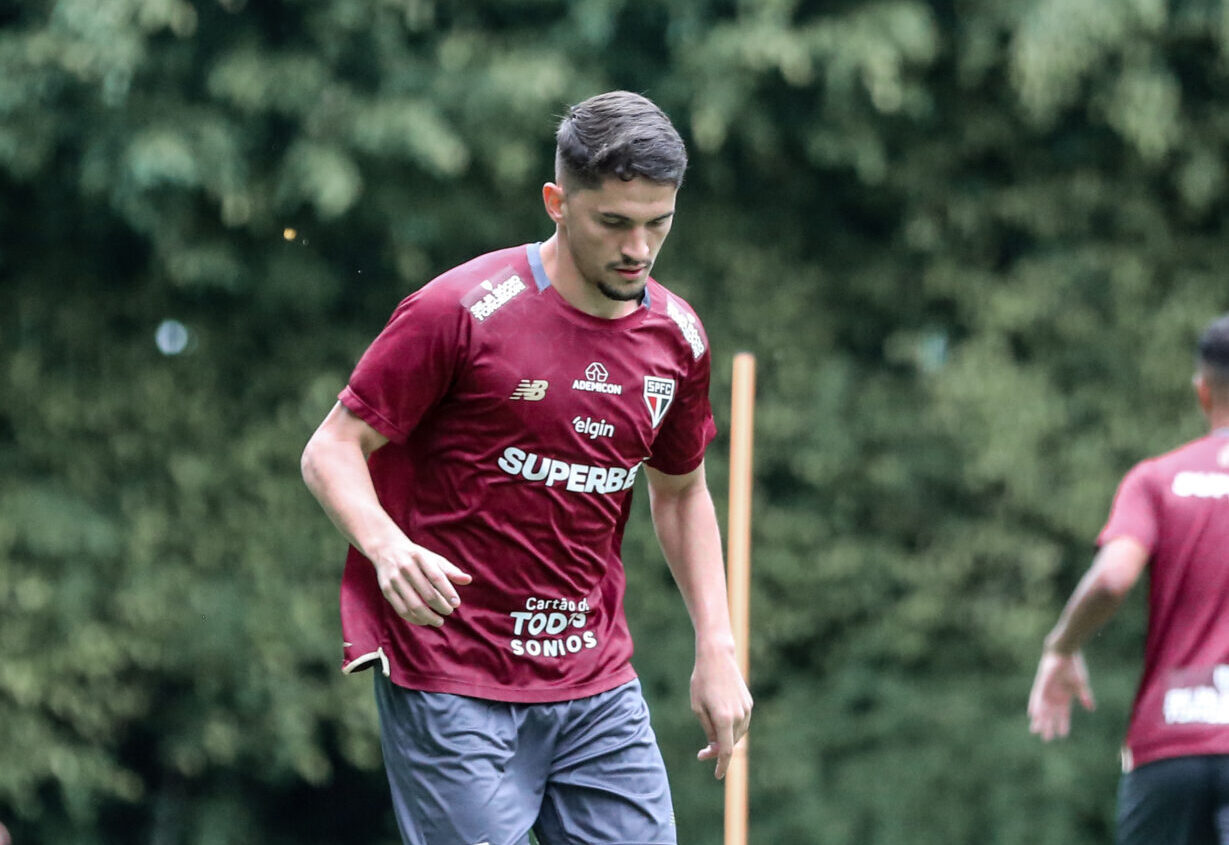 A sessão no CT da Barra Funda começou sob o comando dos preparadores físicos, com exercícios de força na academia e de mobilidade no gramado.