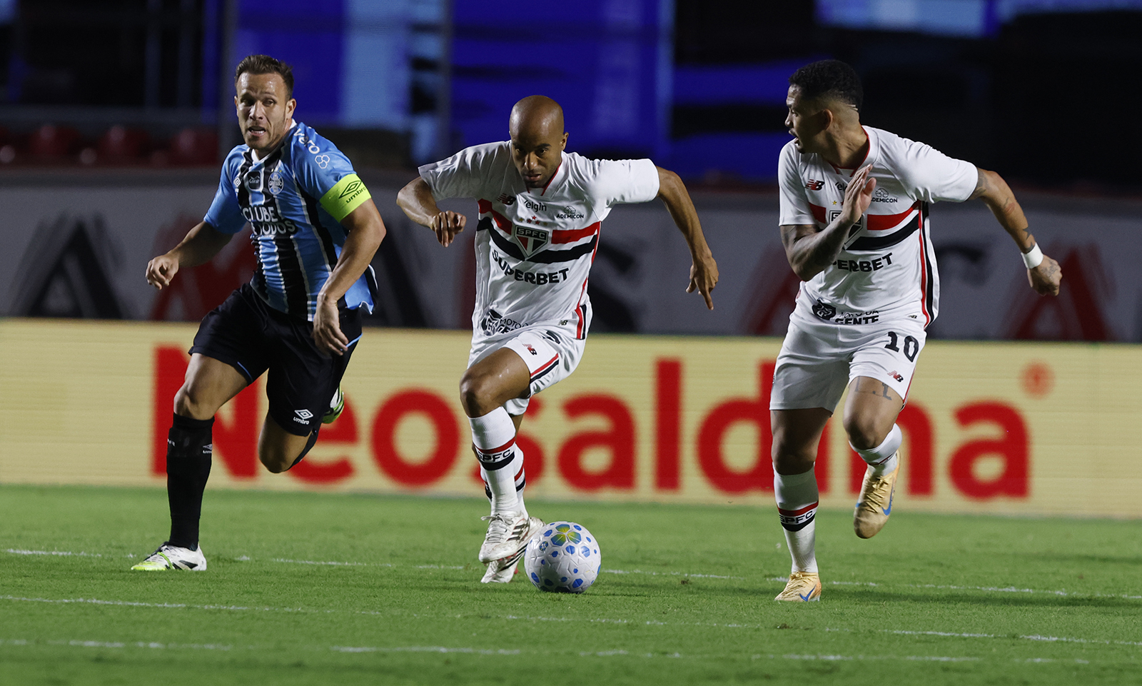 “Ali a gente fez novamente a reunião e a gente decidiu deixar o Luciano bater e, enfim, acabou perdendo, mas tem toda confiança, um grandíssimo jogador, um goleador, tenho certeza que logo ele vai converter, vai fazer gols de bola rolando também, que ele é um goleador nato”, avaliou o camisa 7 do Tricolor, que mais uma vez celebrou seu rendimento.