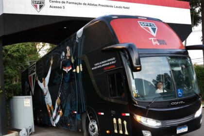 O ônibus do São Paulo terá uma nova personalização para esta temporada, em que são destacadas, de um lado, imagens das três conquistas mundiais do clube, com Raí (1992), Palhinha (1993) e Rogério Ceni (2005), e, do outro, o epíteto “Tricampeão mundial”, em que a primeira palavra está escri...