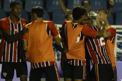 O São Paulo se classificou às quartas de final da Copinha na noite deste sábado (17), após superar o Bragantino nos pênaltis por 5 a 3, depois de um empate em1 a 1 no tempo regulamentar. O jogo aconteceu em Sorocaba (SP). O duelo começou nebuloso para o Tricolor, que levou um gol no primei...