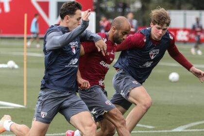 O elenco do São Paulo segue em preparação para a importante partida de quinta-feira (25), contra a LDU, e teve boa notícia no treino comandado por Hernán Crespo na manhã desta terça (23). O meia-atacante Lucas deu mais um importante passo no processo de recuperação de artroscopia no joelho...