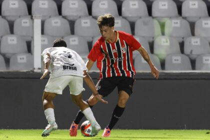 O São Paulo empatou com o Santos em 1 a 1 na noite deste domingo (9), na Vila Belmiro, pelo jogo de ida da final do Campeonato Paulista sub-20. Pedro Ferreira marcou o gol na partida No primeiro tempo, o São Paulo criou boas oportunidades e controlou a maior parte das ações ofensivas, espe...