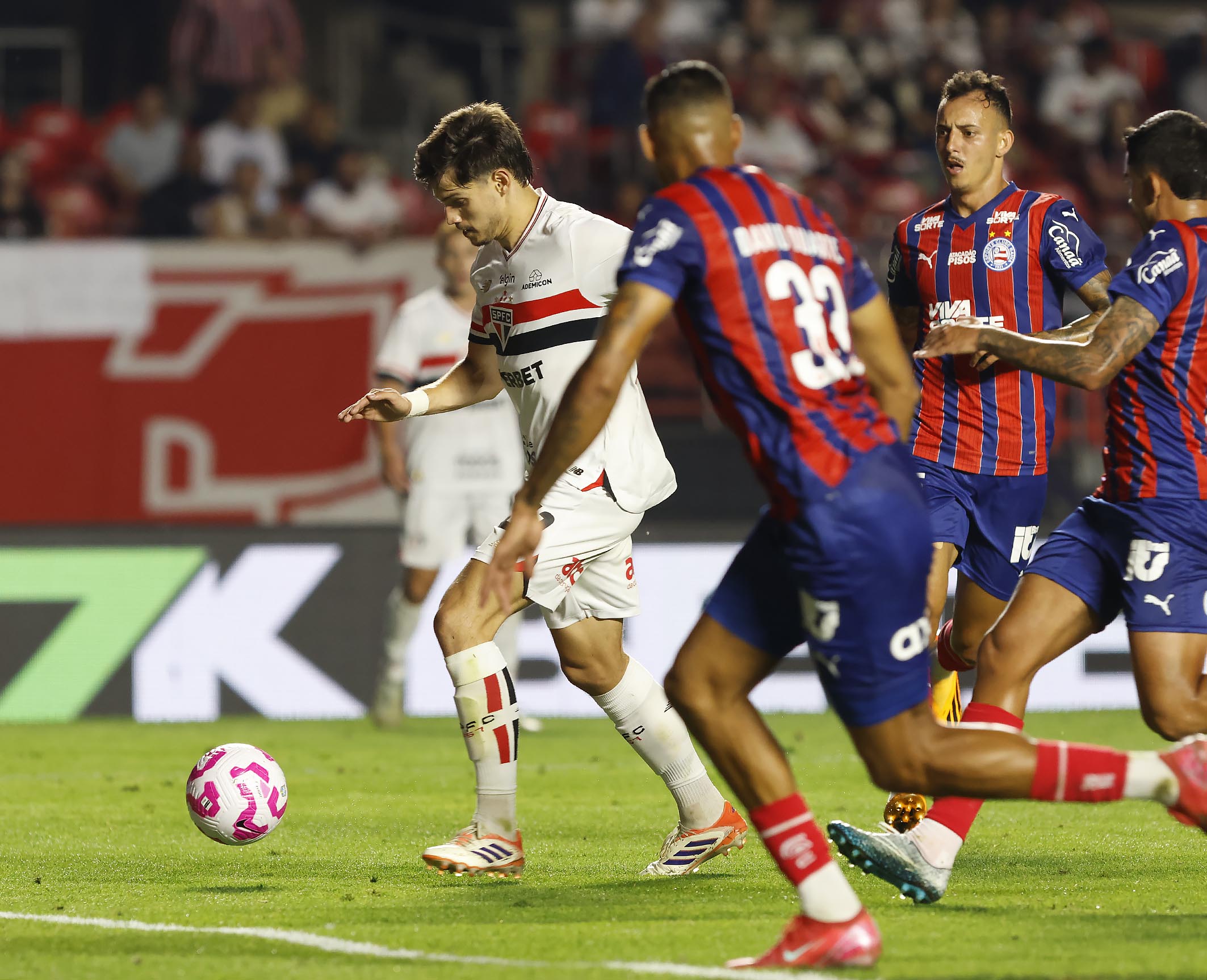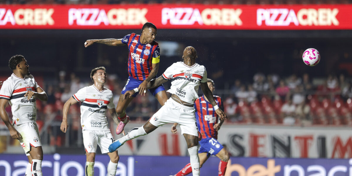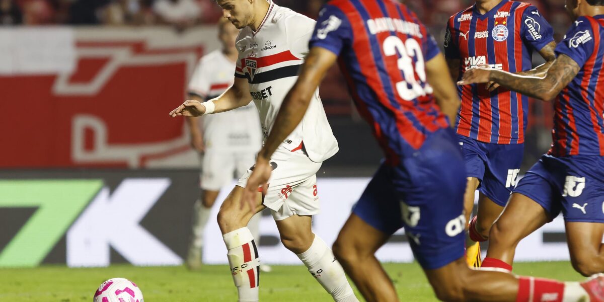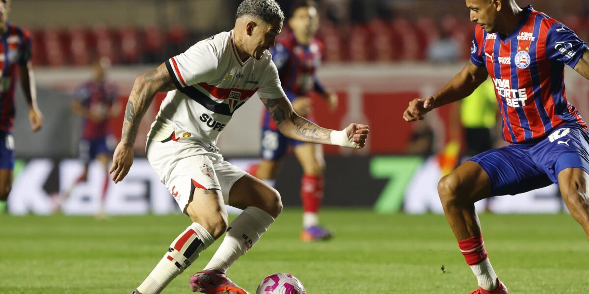 O São Paulo recebe a visita do Bahia de Rogério Ceni na noite deste sábado (25), em duelo da 30ª rodada do Brasileirão marcado para às 21h30 (de Brasília), no estádio do Morumbi. O confronto de tricolores terá transmissão do canal SporTV (TV fechada) e do Premiere (pay-per-v...